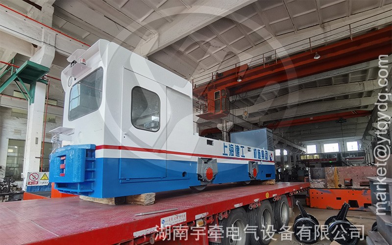 檢修完的25噸蓄電池湘潭電機車由專車發(fā)往上海。